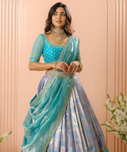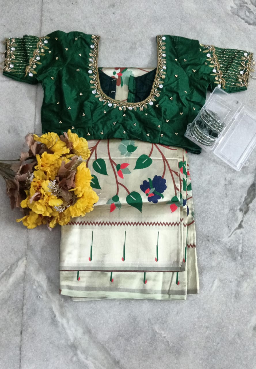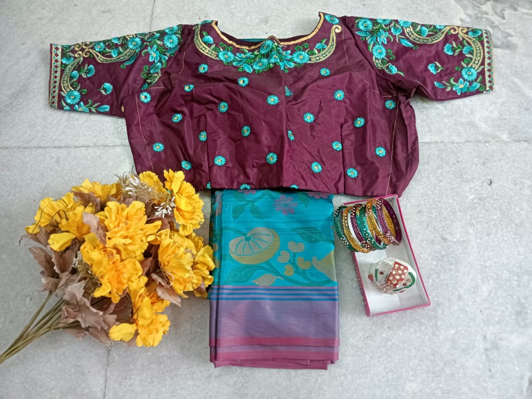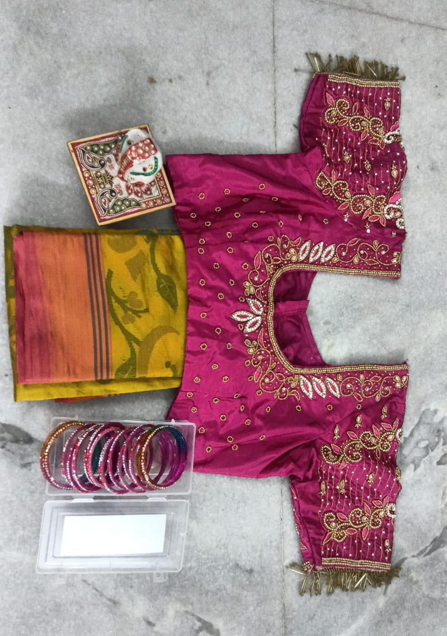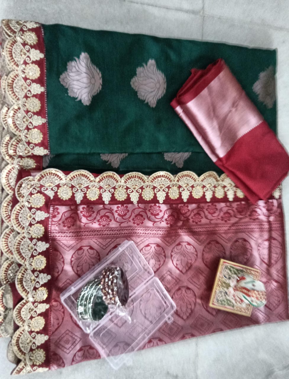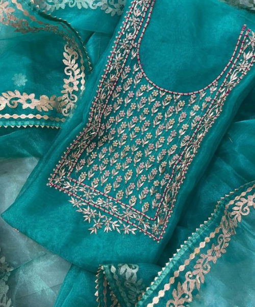 Organza Heavy neck Work Kurti with Organza gota work Dupatta and Shantoon Bottom