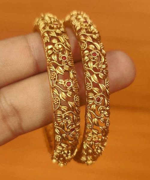 Women’s Antique Handcarved Gold Look Alike Ruby Bangles